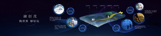 在每一座文旅城,都有融创乐园、融创茂和融创酒店群三大业态,又有雪世界、海世界、水世界、电影世界、体育世界、秀场、大剧院和会议中心等八种主题业态,依据不同区域的具体条件进行组合,从而创造出娱乐与商业的跨界融合体验。